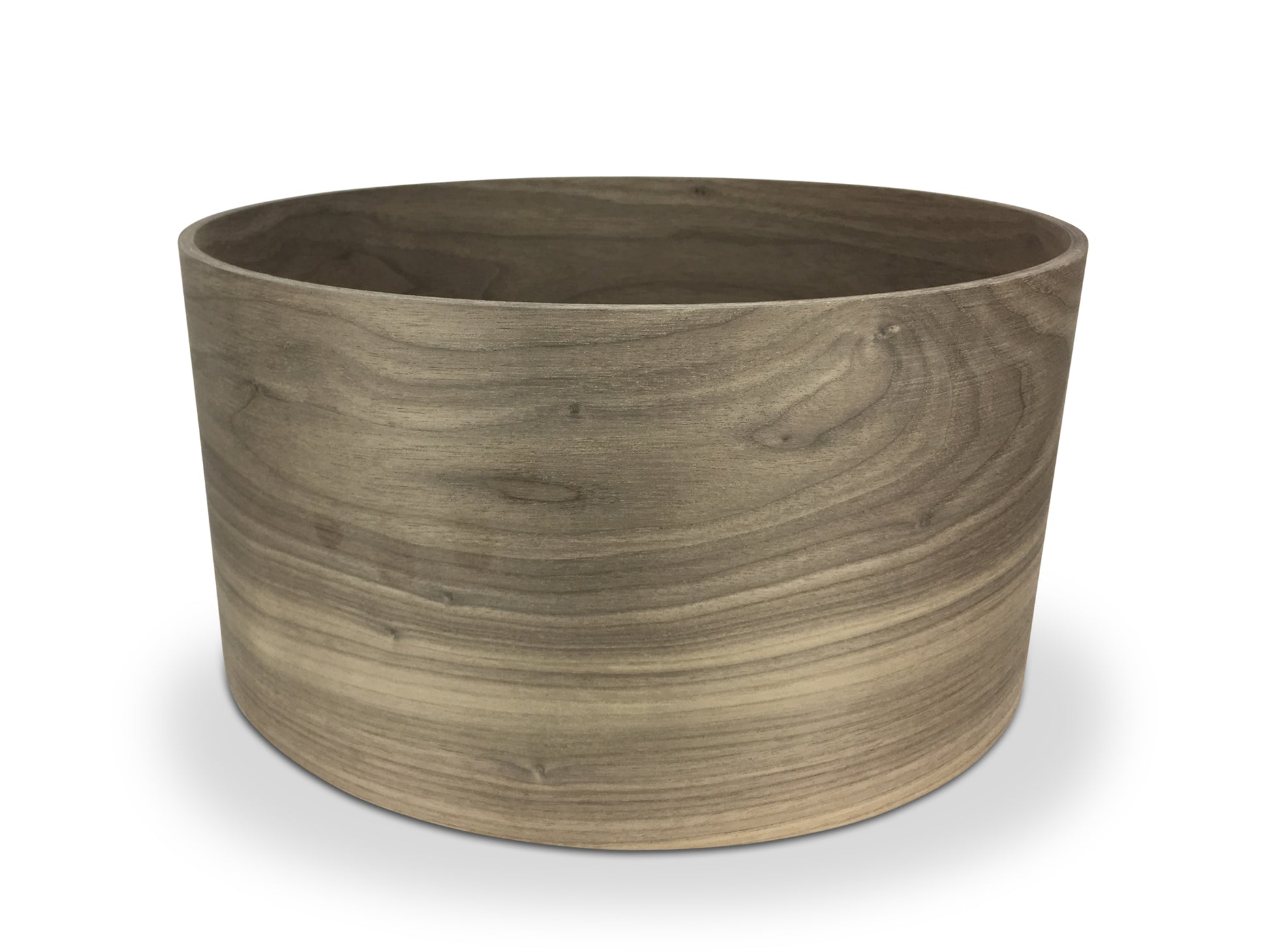 7-lagiger Schlagzeugkessel 14" mit 5,7 mm Wandstärke aus wunderschönem Walnuss/Walnut Holz. Ideal für dein DIY-Projekt, hier direkt frei konfigurierbar von 1" auch ideal um gleich Re-Rings zu bestellen bis 10" tiefe.
