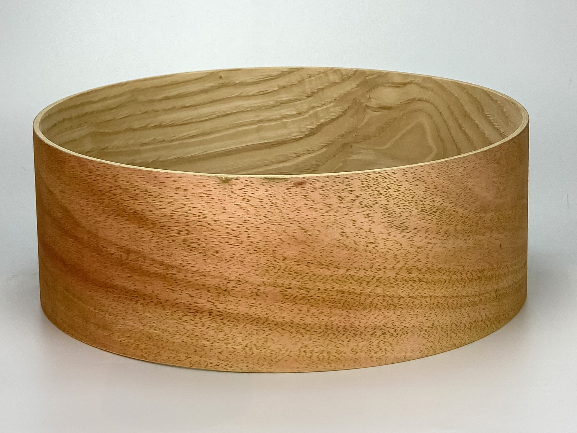 14" x 5" Snare-Kessel, europäischer Kastanie/Chestnut mit einem außenfurnier aus hawaiianischem KOA. Dies ist ein besonderes Einzelstück mit einem sehr selten Furnierholz. Der Klang von Kastanie ist ähnlich Ahorn, allerdings mit einem deutlich ausgeprägterem Bass Spektrum.